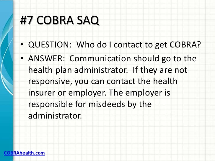 Since COBRA is the name of a federal law and not a company with benefits specialists each employer hires a COBRA Administrator. 877-262-7241 Register Now. Contact the United States Department of Labor DOL the agency that administers COBRA.