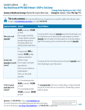 Fillable Online Blue Shield Bronze 60 Ppo 6000 70 Network 1 Shop W Child Dental Fax Email Print Pdffiller