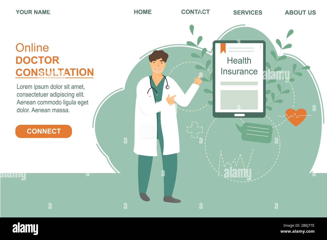 Vector Medical Landing Template Doctor In Uniform With At The Tablet Online Medical Consultation Health Insurance Stock Vector Image Art Alamy