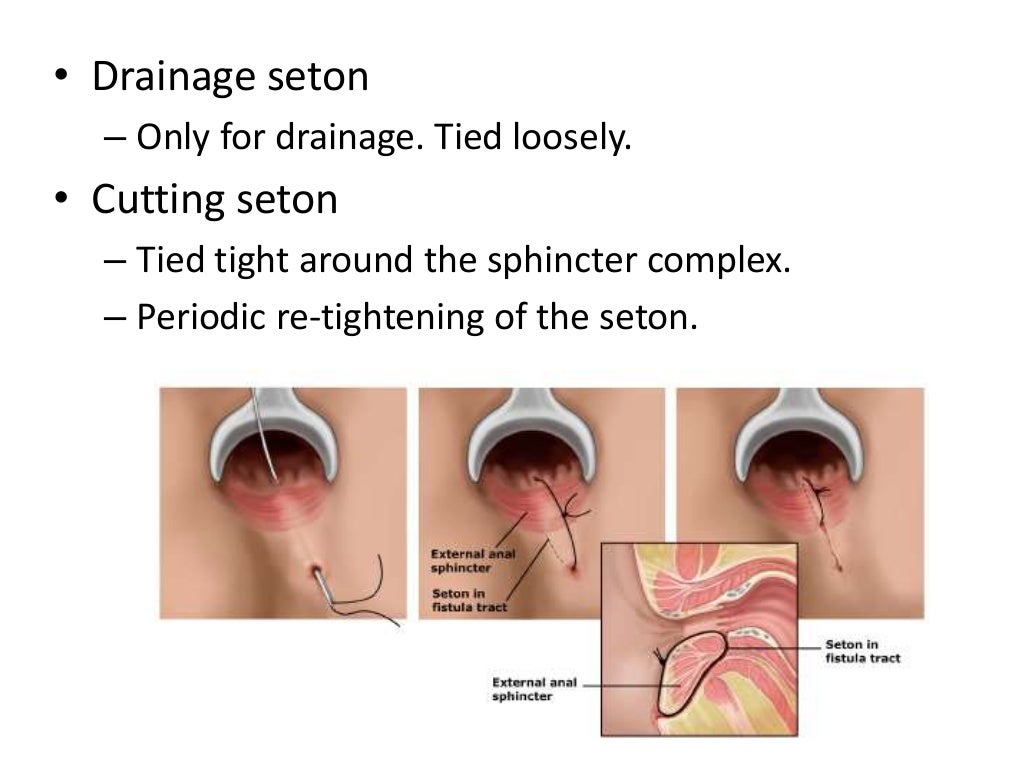 Schilder Etiketten Prüfplaketten Erste-Hilfe-Produkte uvm. Didnt even feel it. Another commonly used type of seton is the cutting seton which can be used to gradually transect the anal sphincter musculature underlying the fistula by externally tightening the suture to induce.