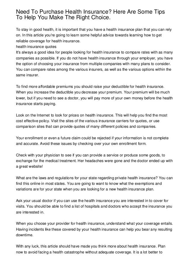Need To Purchase Health Insurance Here Are Some Tips To Help You Mak