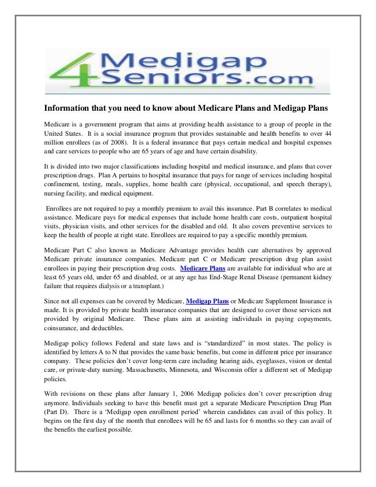 Information That You Need To Know About Medicare Plans And Medigap Pl