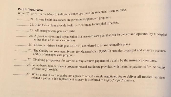 Solved Write Tor F In The Blank To Indicate Whether You T Chegg Com