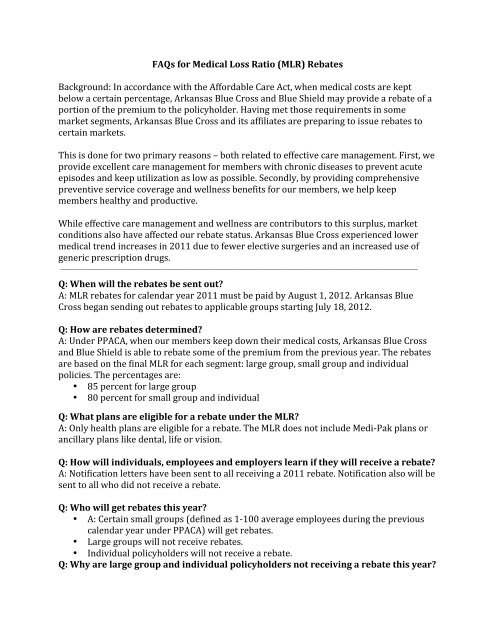 Faqs For Medical Loss Ratio Mlr Arkansas Blue Cross And Blue